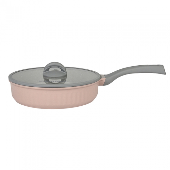 Сковорода 240мм с ручкой,со стеклянной крышкой, АП линия "Stella"(cappuccino) "Kukmara"