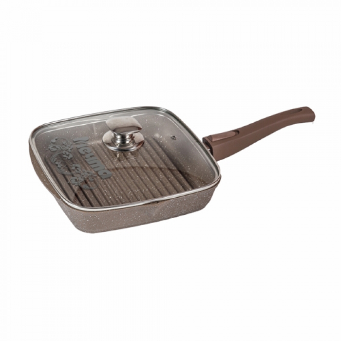 Сковорода-гриль квадр.24х24 АП Гранит brown со съемной ручкой и стекл. крышкой арт.С064806