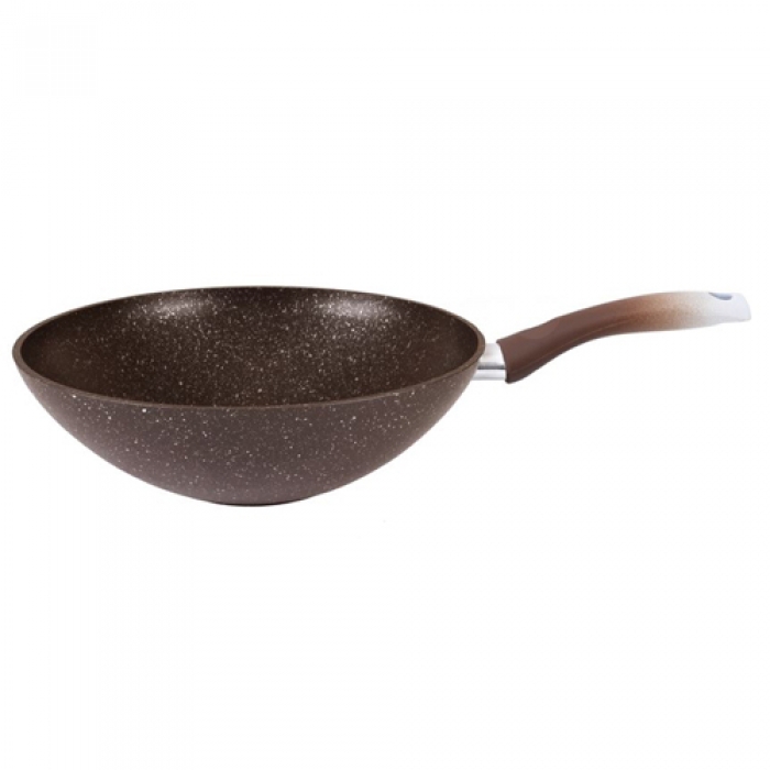 Сковорода wok (классическая) 280/95мм с ручкой, АП (кофейный мрамор) "Kukmara"