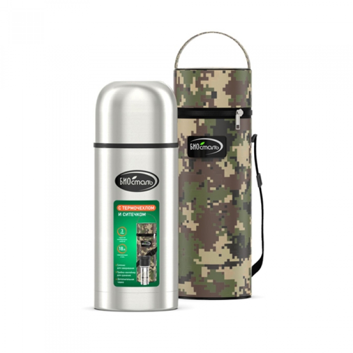 Термос "BIOSTAL-ОХОТА" у/г с термочехлом NBP-750BZ, пробка с ситечком БИОСТАЛЬ