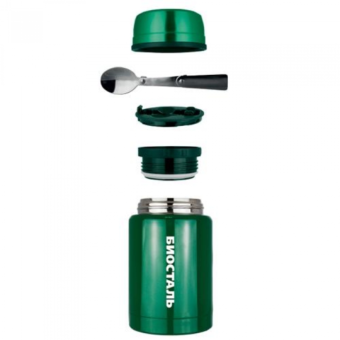Пищевой термос с широким горлом NTS-500G ТМ «BIOSTAL» стильного зелёного цвета относится к серии «ОХОТА». Термосы с широким горлом предназначены для хранения горячей пищи (преимущественно вторых блюд), холодной пищи (замороженных продуктов, мороженного и пр.), фруктов и льда. Пробка, обладая дополнительной теплоизоляцией, позволяет термосу дольше хранить тепло. Термосы поставляются в комплекте со складной ложкой, которая удобно размещается в пробке.