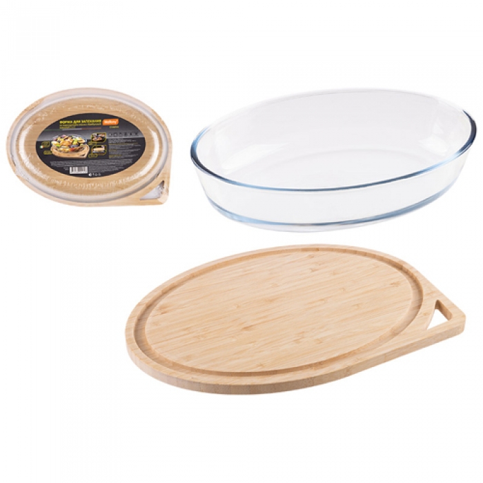 Форма для запекания 2,4 л, Cristallino, с бамбуковой крышкой 3 в 1, стеклянная, овальная арт.108342