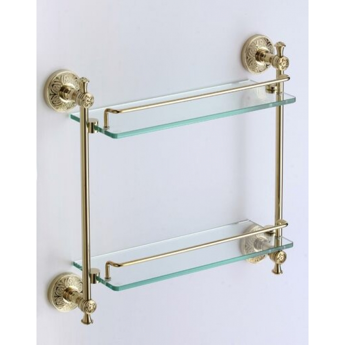 S-005822B Полка прямая двойная (стеклянная) 40 см золото Savol