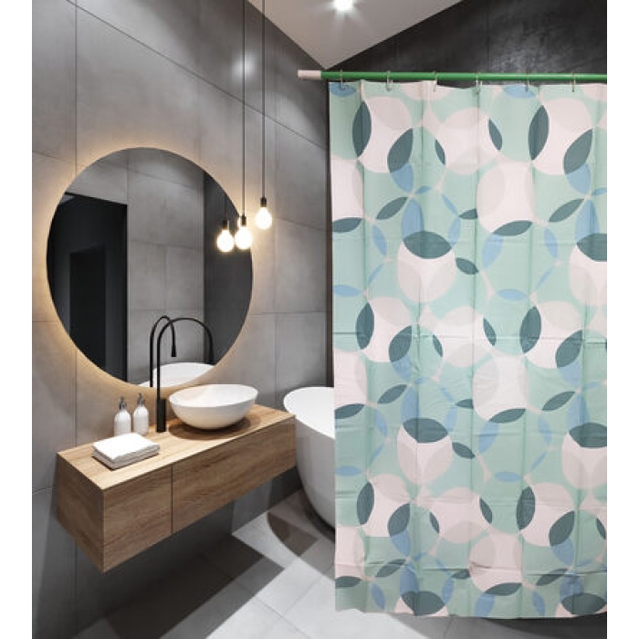 Штора д/ван SANTREK HOME 180х180 PEVA 60628 с кольцами Зелёные лепестки (П180)