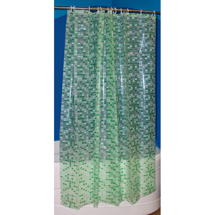 Штора для ванной PEVA эконом 180*180 зеленая с кольцами