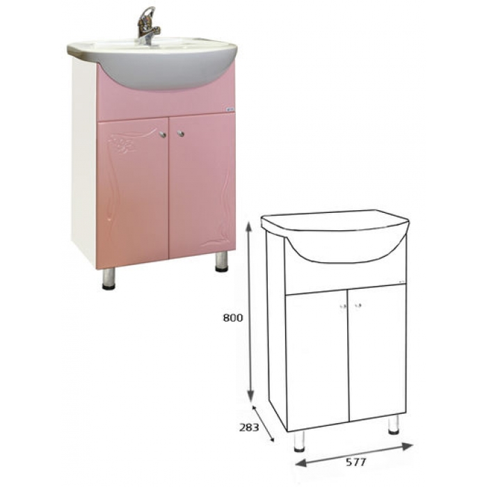 Подстолье "Глория-60" (розовый) 2 двери под умыв. "Эрика - 61" 600х800х290