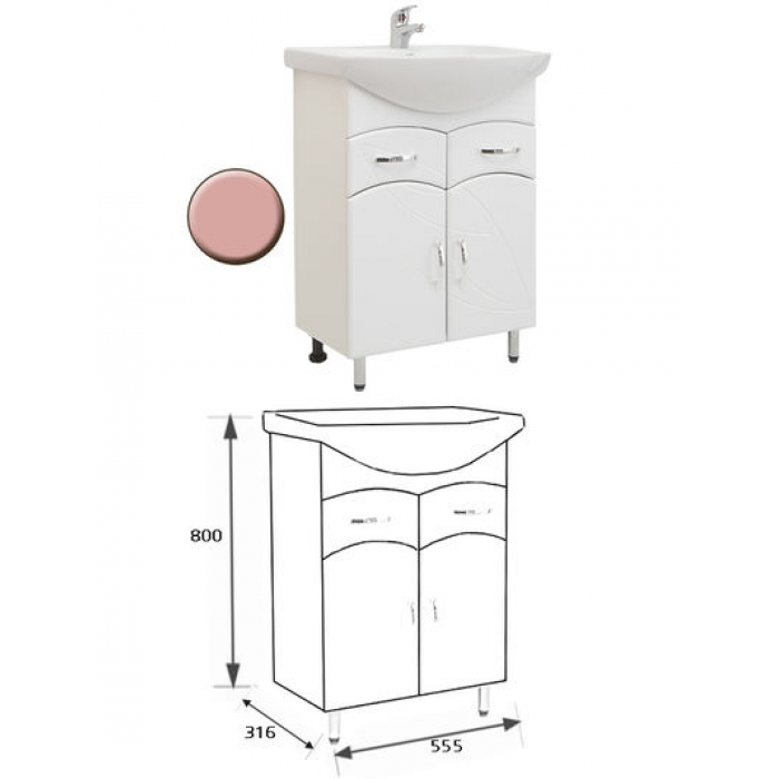 Подстолье "Весна 60" (розовый) 2 ящика2 двери под умыв. "БАЙКАЛ-60" 555х800х316