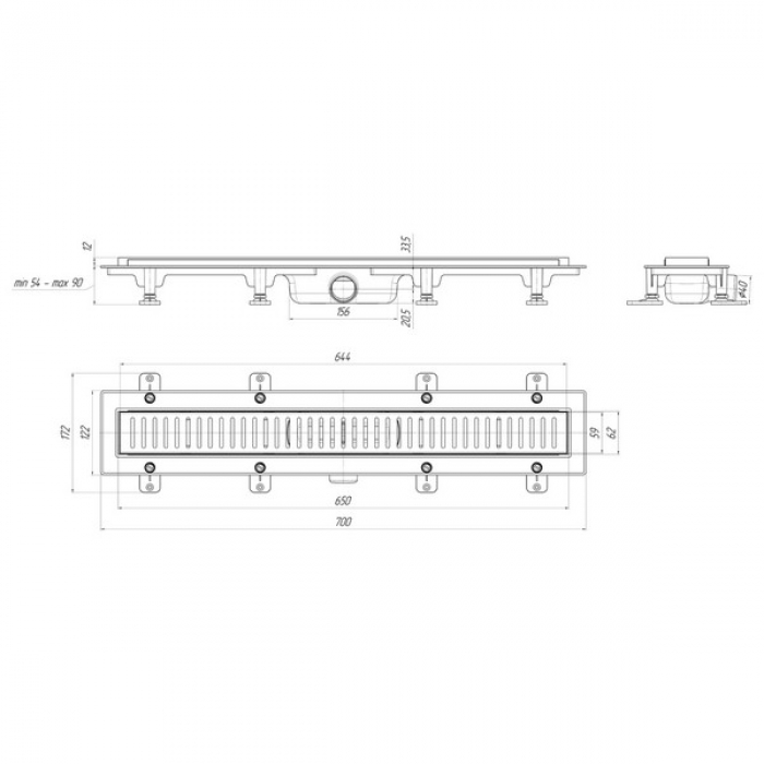 Трап линейный пласт. 650*62 вып.40мм, стальн. нерж решетка глянец "Бимс" АНИ пласт TL1465G