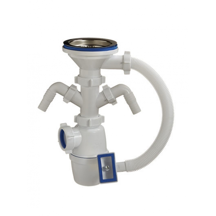 А-4013 Сифон бутылочный ОРИО 3 1/2" х 40 с переливом, с двумя отводами