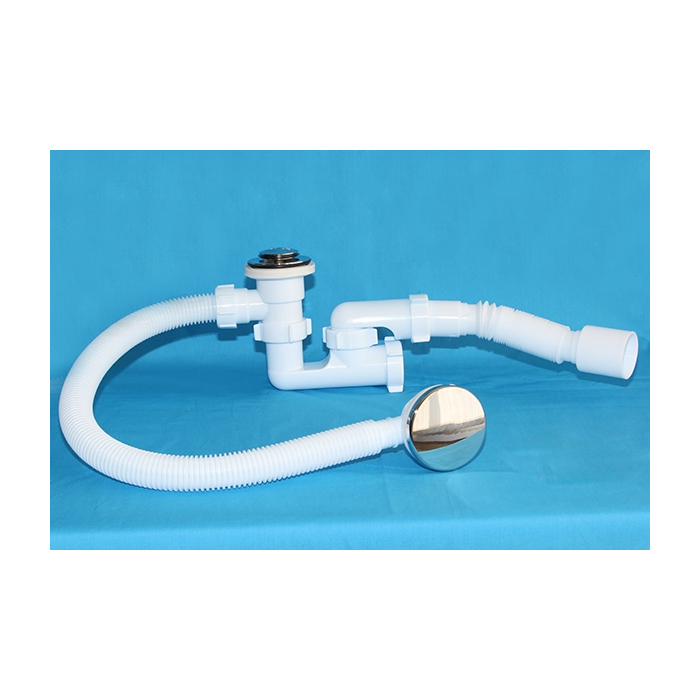 Сифон для ванны - слив воды закрывается и открывается путем нажатия на кнопку выпуска.