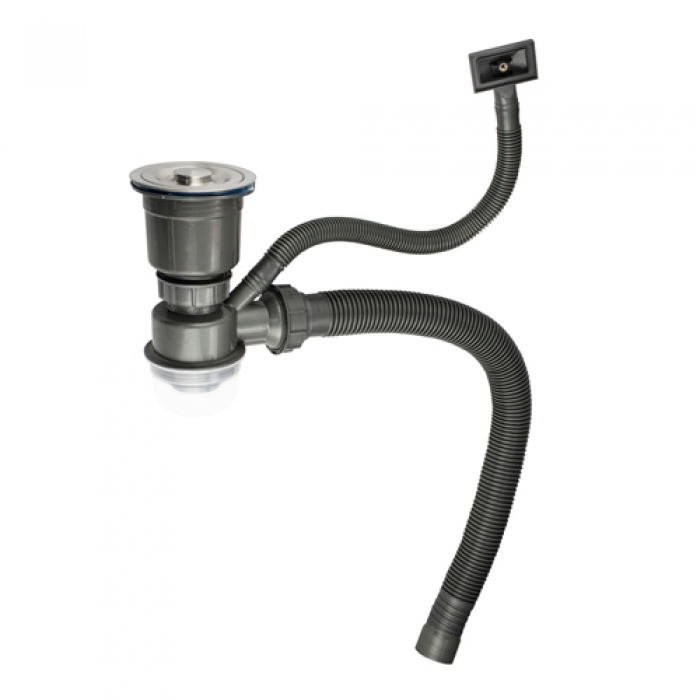 Сифон для кухонной мойки 3*1/2 большая горловина с переливом, с отводом , со съемной корзиной 8733
