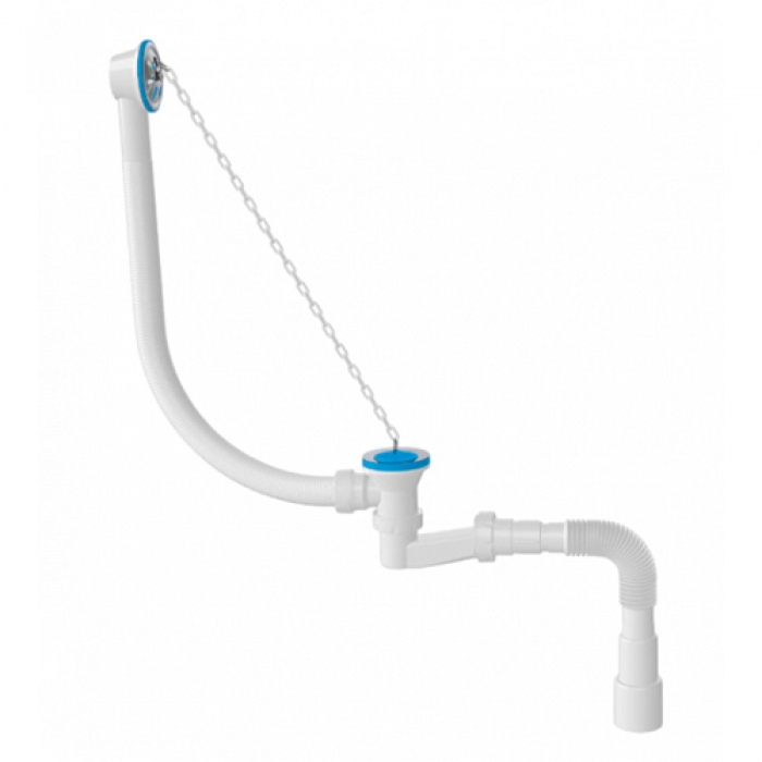 Сифон для ванны низкий, с пластмассовой цепочкой 25 шт в коробке 1521