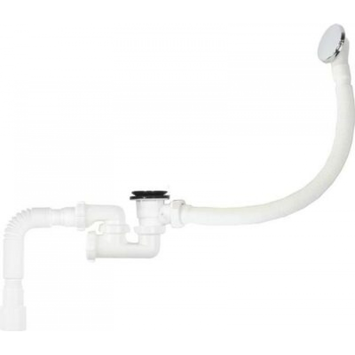 V672-18-MR Сифон для ванны регулируемый 1 1/2х40 с выпуском и переливом Aquant клик-клак утаплив. грибок мет., с гибкой трубой 40х40/50 автомат
