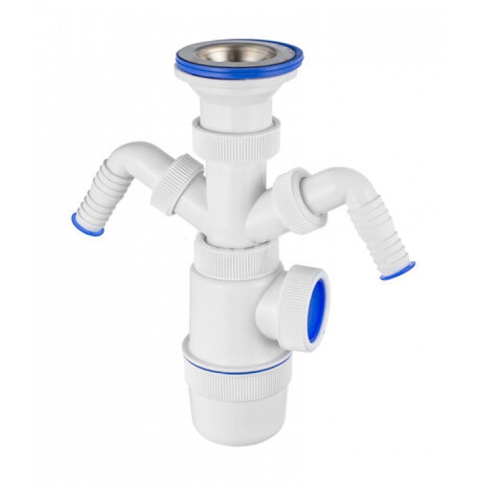 ВП 6144 Сифон "Элит" с нерж.чашкой , с двойным отводом для СМ (1 1/2 - 40 мм)