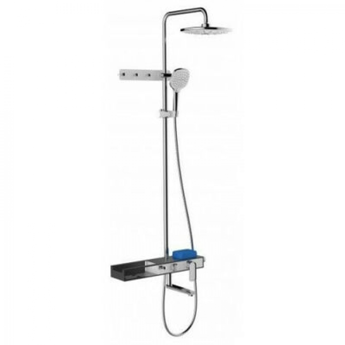 G2468 Душевая система GAPPO с полочкой, с настенными крючками, с верхним душем, смесителем (черный/бел/хром)