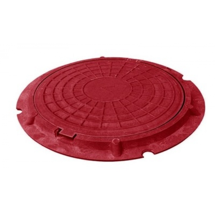 Люк канализационный круглый полимер."Садовый" d=760мм, h=50мм (нагрузка 1,5т) Красный ЛМ