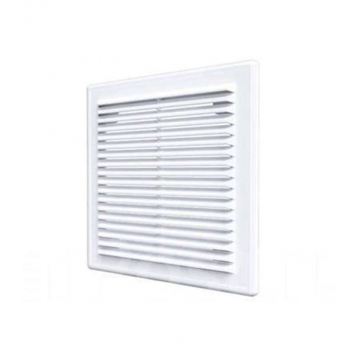 Решетка не разъемная, наклонные жалюзи с москитной сеткой 370х370 (Э3737Н)