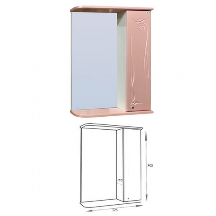 Зеркало-шкаф "Глория 50" правый (розовый) 525*705*180