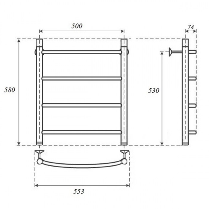Полотенцесушитель ZOX ЛЦ 60х50 1'' 4 перекл ДУГА нижнее подкл (крепеж, без монт комп) В4