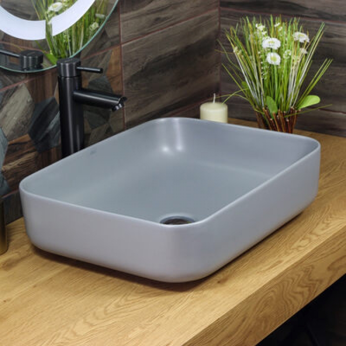 800-320353MG Фигурный умывальник накладной серый матовый 455х325х135 MELANA