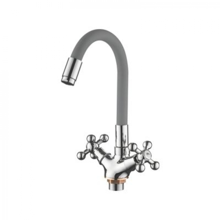 1319-9 Смеситель Кухня LEDEME на гайке с силиконовым изливом МАКСИ (серый/хром)