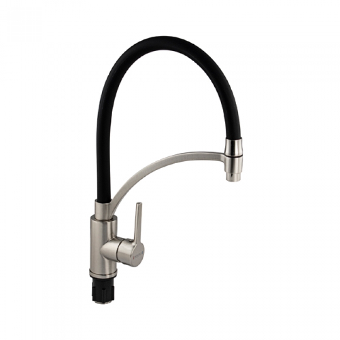 Смеситель для кухни, гибкий чёрный излив с фиксацией, корпус из нержавеющей стали MAGNUS 9421