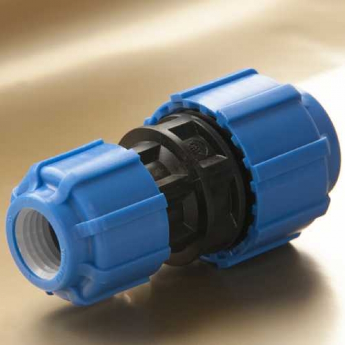 Муфта компрессионная соединительная переходная. Предназначена для перехода с трубы одного (большего) диаметра на трубу другого (меньшего) диаметра, в трубопроводных системах питьевого или технического водоснабжения с применением полиэтиленовых ПНД труб при строительстве систем полива на частных приусадебных хозяйствах, систем орошения городских газонов, или в сельском хозяйстве. При строительстве фонтанов, бассейнов, где нет необходимости использовать фитинги с повышенным запасом прочности, т.к. благодаря использованию облегченных материалов муфта компрессионная переходная имеет сниженную стоимость и может работать в трубопроводах с максимальным рабочим давлением до 16 атмосфер (PN16).