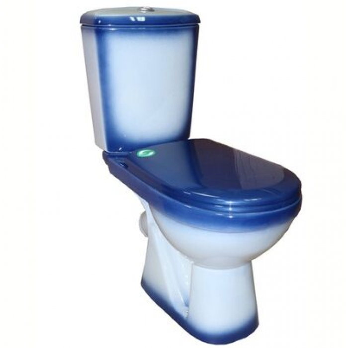 Унитаз-компакт "КОМФОРТ" декор (синий, с арматурой, антивсплеск,сиденье, косой выпуск) г.Киров