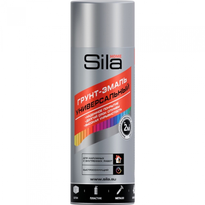 Краска аэрозольная универсальная Sila HOME серый грунт 520 мл SILP 010