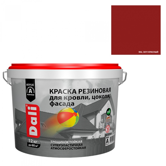 Краска резиновая для кровли, цоколя, фасада DALI красный - 12 кг (65192)