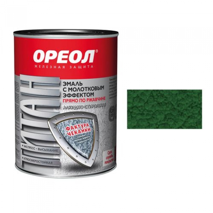 Эмаль с молотковым эффектом "ОРЕОЛ" алкидно-стирольная "ТИТАН" темно-зеленая 0,8кг