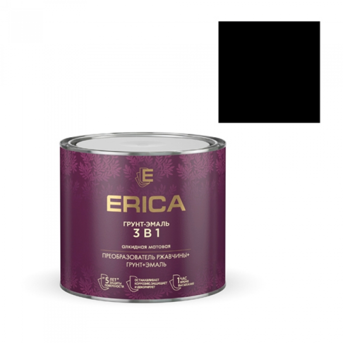 Грунт-эмаль ERICA 3в1 по ржавчине алкидная МАТОВАЯ черная 1,8 кг