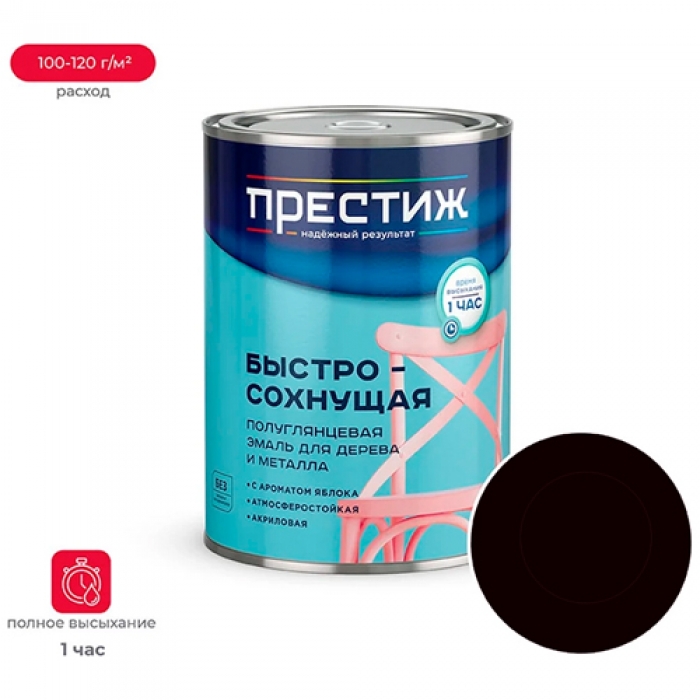 Эмаль быстросохнущая полуглянцевая Престиж акриловая для метала и дерева Шоколадная 0,9 кг