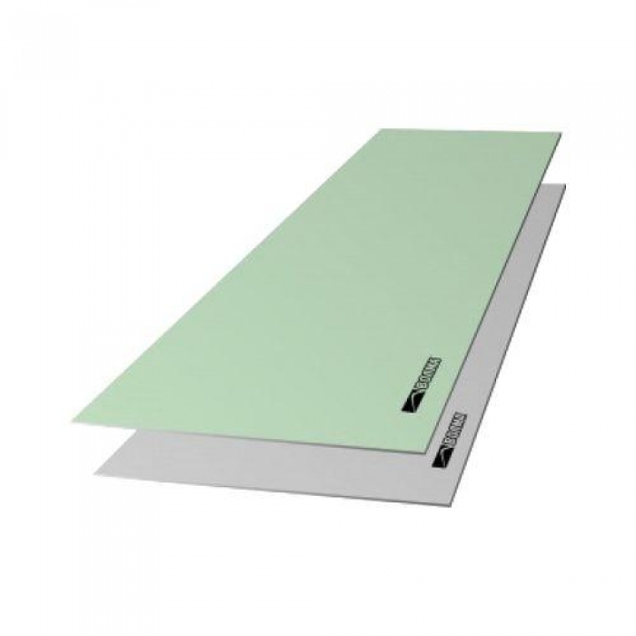 Плиты строительные для сухой штукатурки стен влагостойкие — отделочный строительный материал, представляющий собой лист, состоящий из двух слоев специального картона и сердечника из слоя затвердевшего гипсового теста с специальными армирующими, гидрофобными и антигрибковыми добавками.