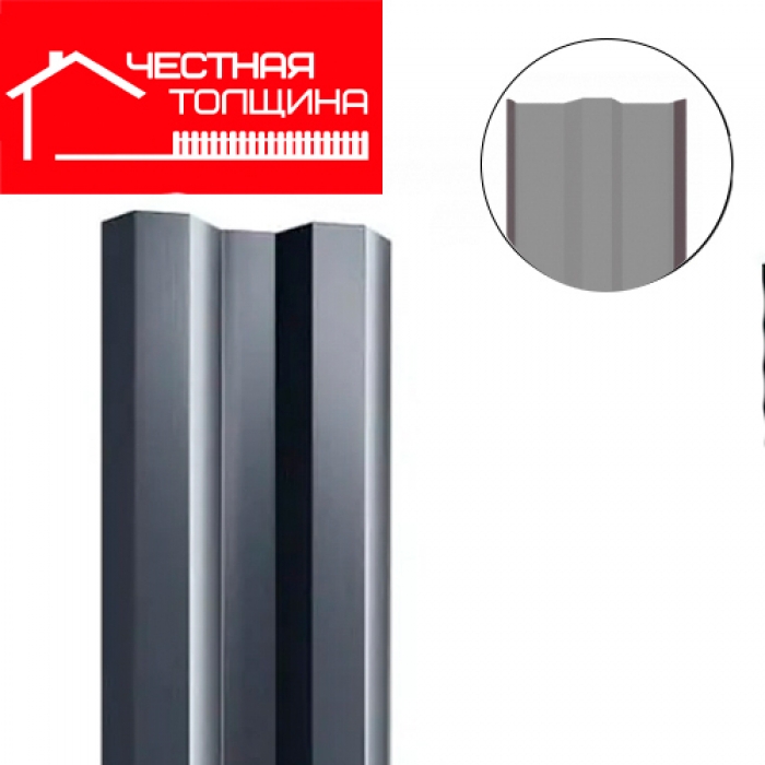 Штакетник ПРЯМОЙ Честная толщина Графитовый серый 7024 длина 1,25м, ширина 80 мм г.Пенза (Кармет)