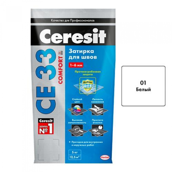 Затирка №01 белый 2-5мм ( 5 КГ ) ЦЕРЕЗИТ СЕ33 S