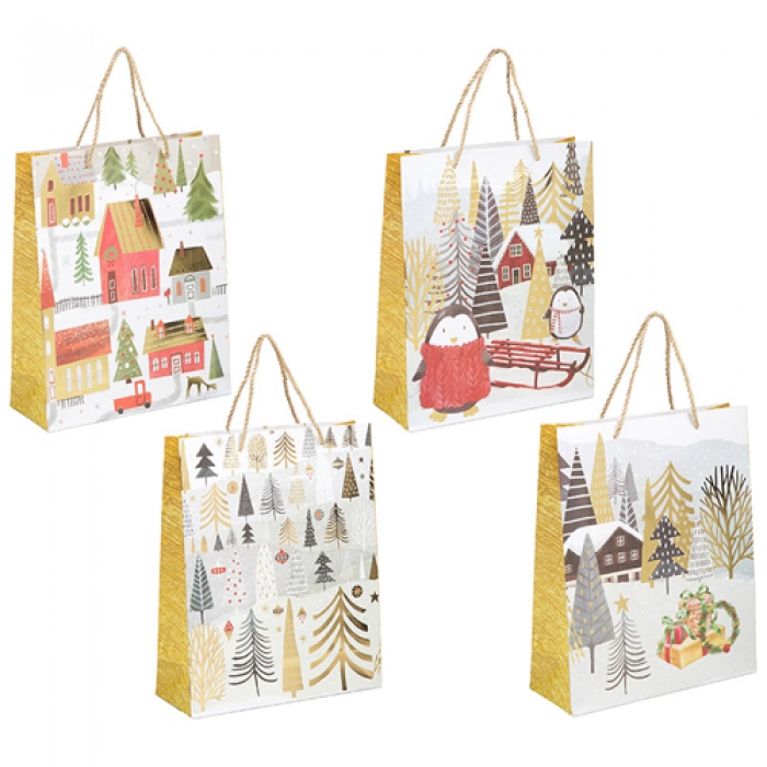 Пакет подарочный "Новогодние забавы" размер L 26х10х32 см (4 дизайна в ассортименте) арт.108648