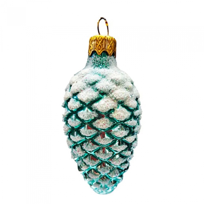 Ёлочное украшение "Шишка в снегу, бирюзовая глянцевая", в подарочной упаковке, h-9 см арт.ФУ-2-90/51