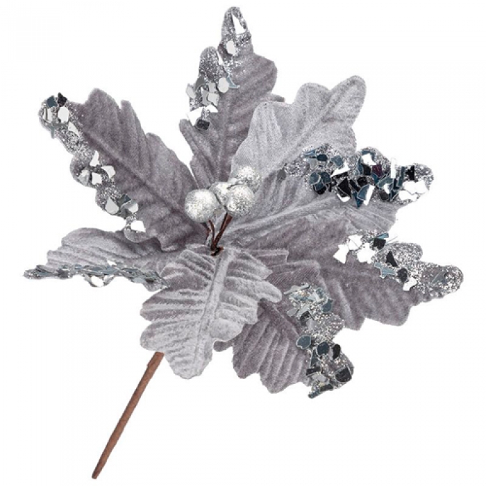 Украшение декоративное Волшебная страна Пуансеттия, цвет серебряный, диаметр 15 см 110610