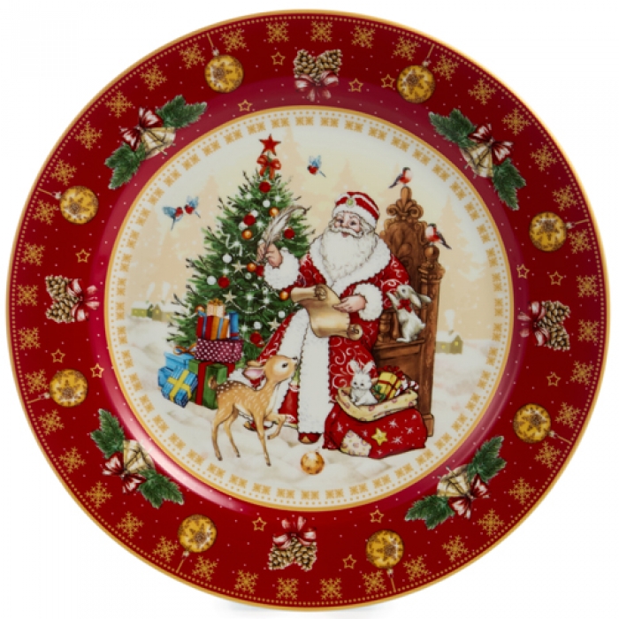 Тарелка обеденная lefard "Дед мороз" 27 см красная 85-1719