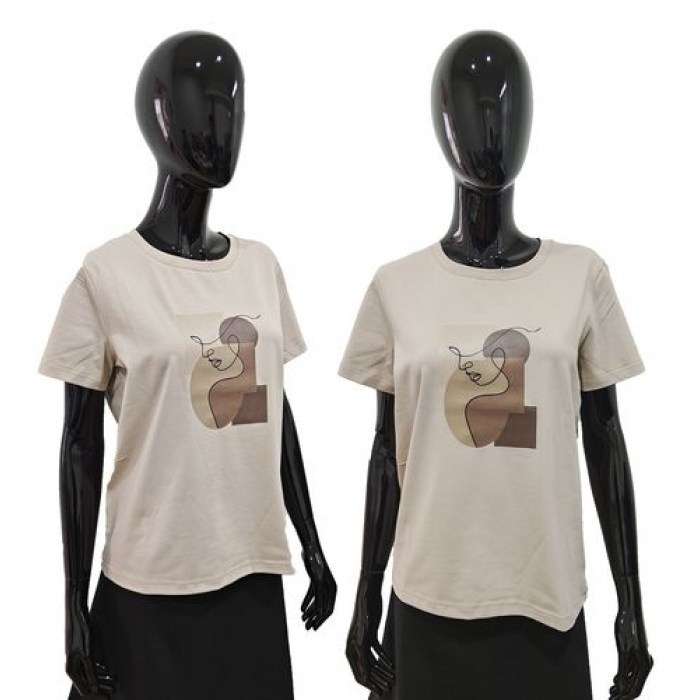 Футболка женская Доброшвейкин Принт бежевая Образ размер 46