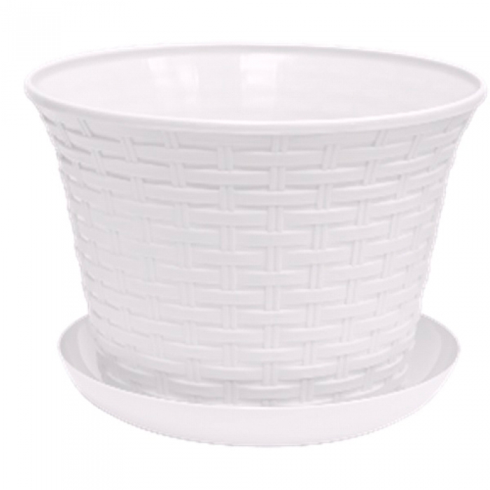 Кашпо круглое "Ротанг" 8,0 л с поддоном (белый) 368006 Виолет