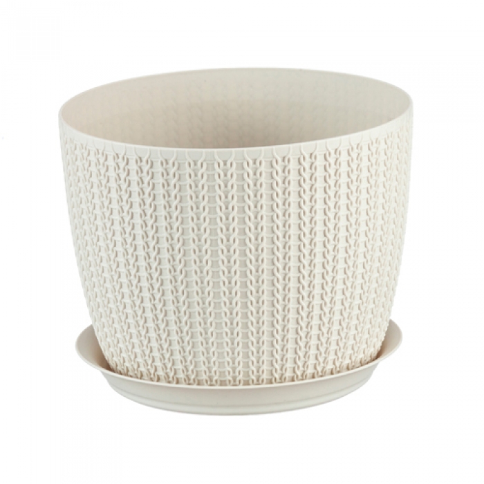 Кашпо ВЯЗАНИЕ D135мм 1,1л с поддоном белый ротанг М3119