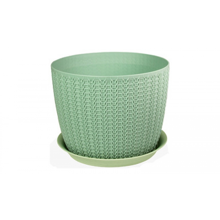 Кашпо ВЯЗАНИЕ D135мм с поддоном Фисташковый ("М-пластика") (М 3119)