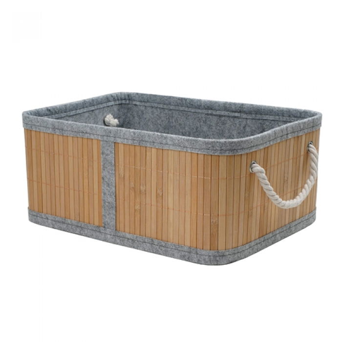 Корзина стеллажная с ручками "Бамбук", Д380 Ш270 В160, натуральный, серый арт.Shan-17L