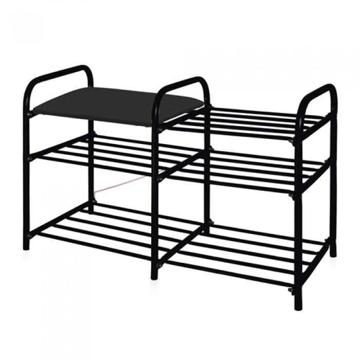 Этажерка "Люкс 3" (500х330х790) 3-х ярусная с мягким сидением черный/матовый черный ЭТЛ3-1/Ч