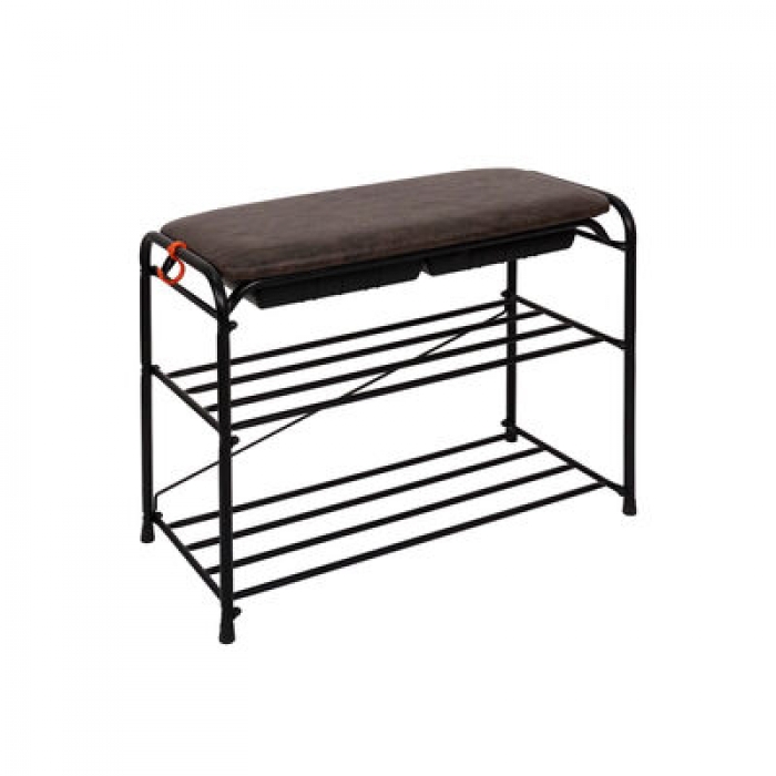 Подставка для обуви АЛЬФА 23 ЧЁРНЫЙ с сиденьем и ящиком (650х300х480) нагр. на полку 8 кг, на сиденье 120 кг ЗМИ (ПДОА23СЯ Ч)