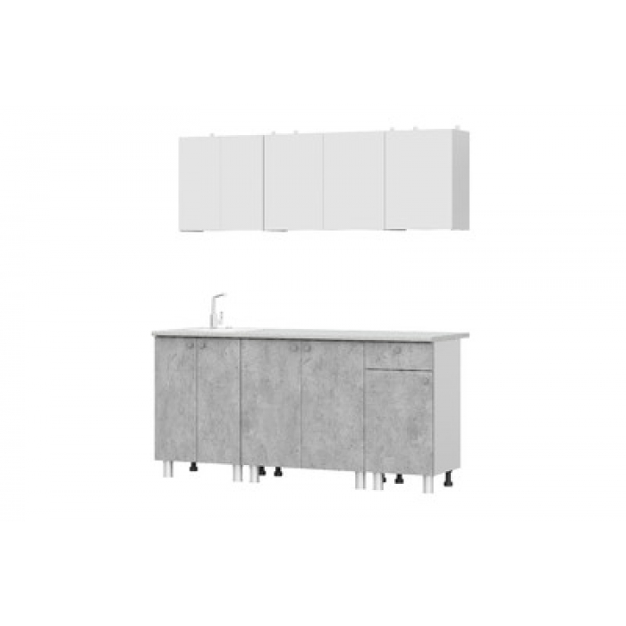 Кухня "КГ - 1(1800)" Корпус Белый Фасад Белый/Цемент светлый СТ Антарес 1800х846/556х600/296 (8 мест)