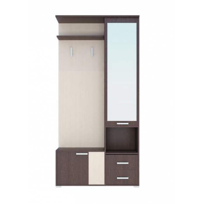 Прихожая Домино А Шкаф с зеркалом Фасад Дуб молочный/Каркас-Венге 1,0х2,05х0,323м (4 места) АЖ-69