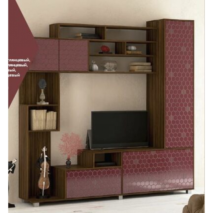 Гостиная Шарм 2,0 (Дуб Бурбон/Бордо глянцевый) 2000х2000х430 (4 места)